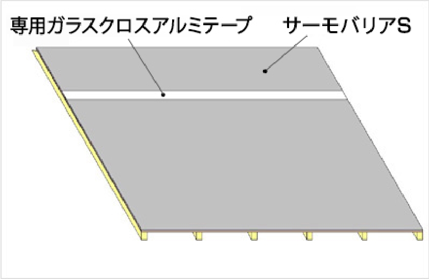 突き合わせたサーモバリアのジョイント部分を、専用アルミテープで張り合わせます。